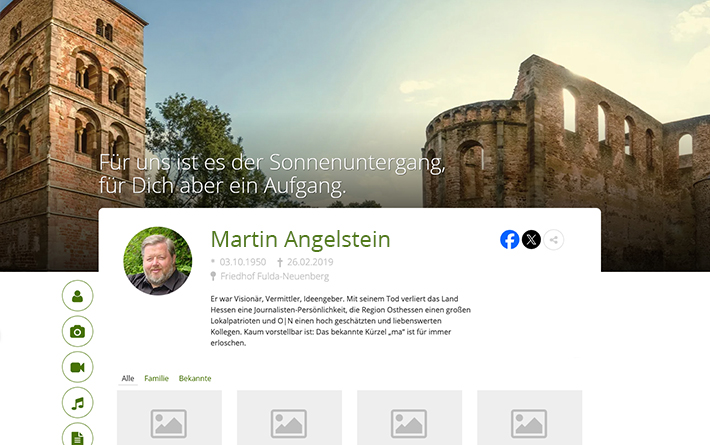 Im Bereich „Erinnerungen“ können ganz persönliche Erlebnisse, die die Hinterbliebenen mit dem Verstorbenen verbinden, verfasst und geteilt werden. Dabei kann auch ein Bild des Verfassers hinzugefügt werden.